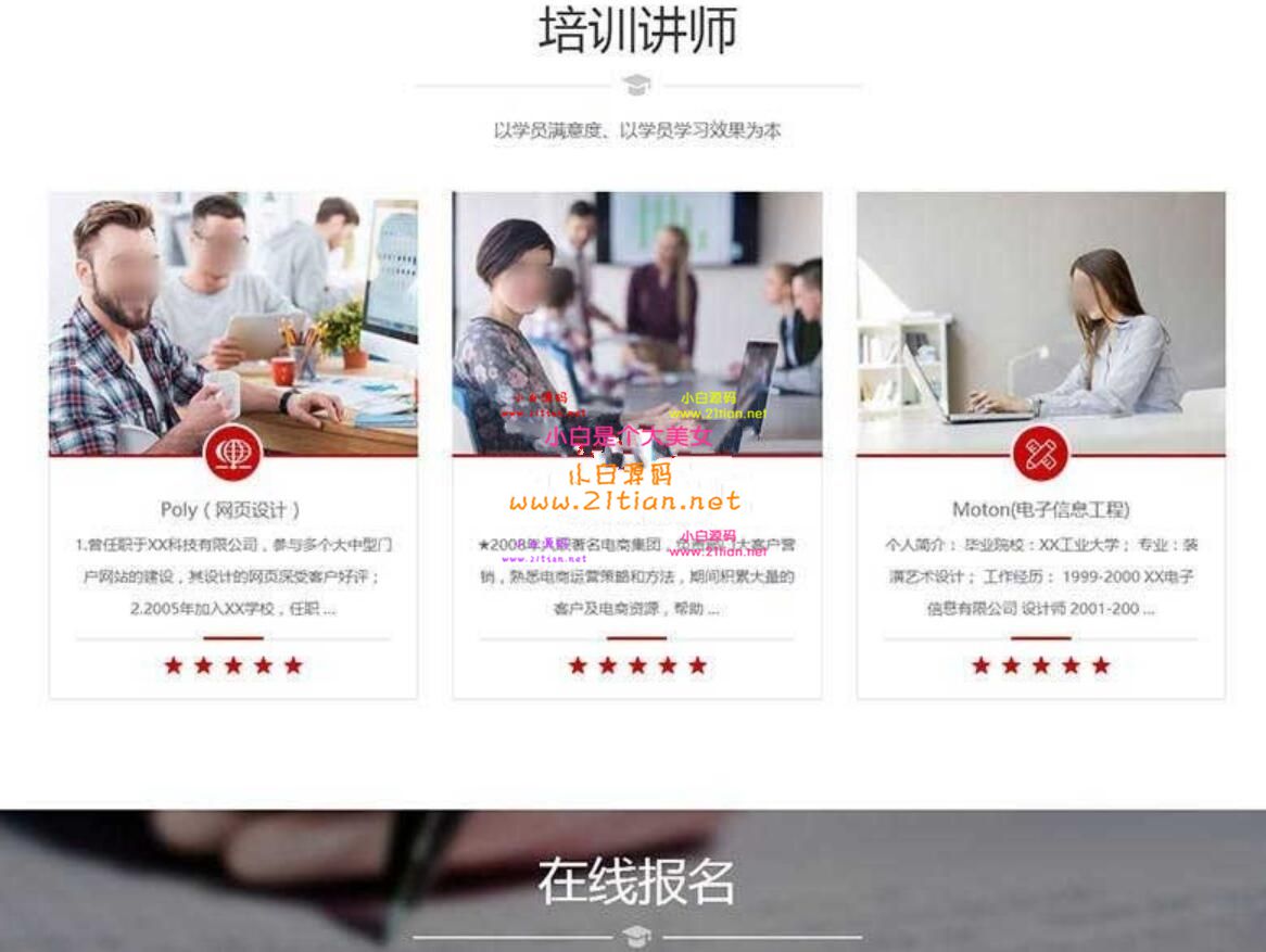 教育培训机构触屏手机版整站模板,带有报名订单系统,底部漂浮等功能