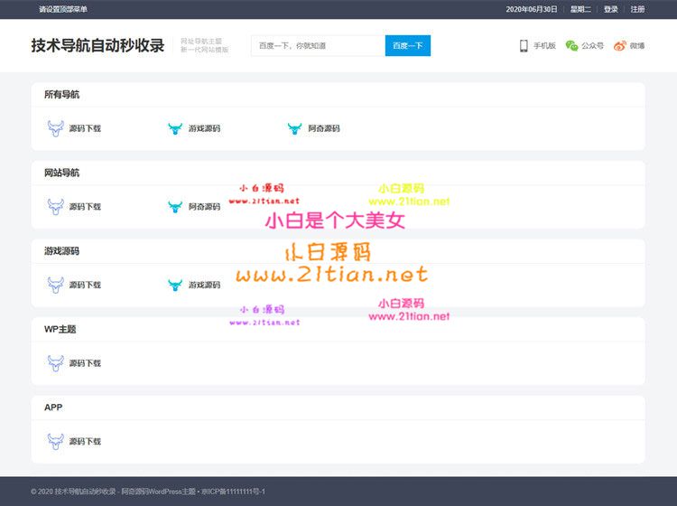 Wordpress响应式中文网址导航主题模板HaoWa1.3.1