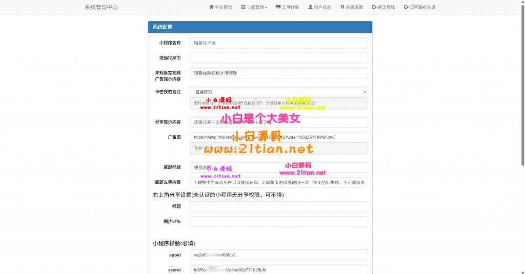 【微信发卡小程序二开版】卡密系统+流量主+多模式领取|PHP后端+完整搭建教程