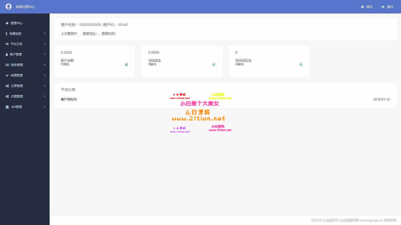 【内容简介】 本资源为一套完整开源的支付代收代付聚合系统,支持微信、支付宝官方通道及第三方支付对接, ...