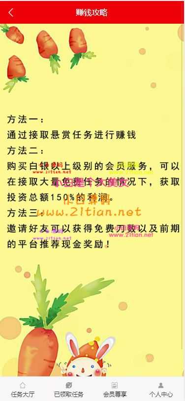 程序为ThinkPHP3.23框架。发布任务付费开通权限,支持等级购买,不同等级可以设置返佣和领取任务数。支持会员等级购买,三级返佣。