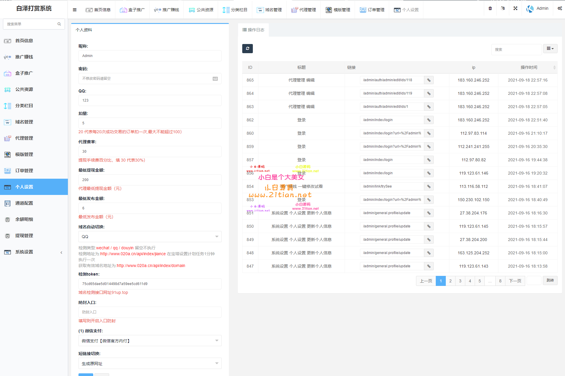 THINKPHP图片为实测截图,支付对接,盒子推广,域名防封,等一系列功能皆为正常 用途就是,比如,你要看视频,就得支付,可以包天,包周,包月 前台截图就不发了,懂得都懂!