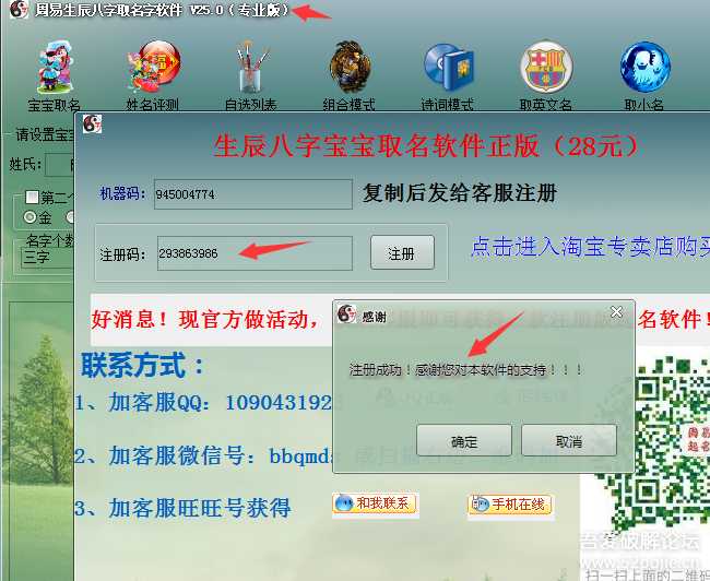 [原创破解] 周易生辰八字取名字V25.0算法注册机 |
