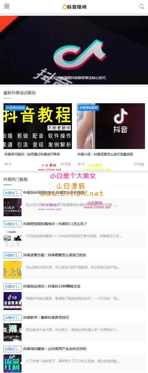 织梦dedecms响应式抖音培训课程新闻资讯类网站模板(自适应手机移动端)